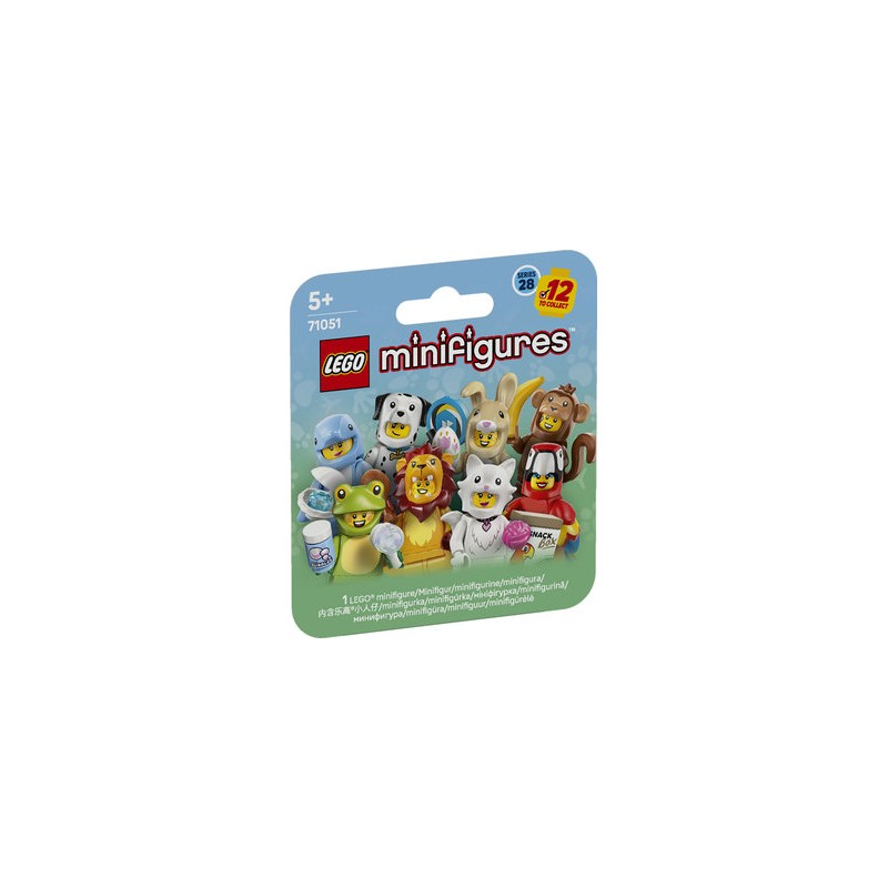 Kids and collectors can play out fun stories with 1 of 12 collectable figures from the LEGO Minifigures Animal Series 28 (71051), featuring a mystery box containing a small animal toy for 5+ year old boys and girls. There is 1 surprise LEGO minifigure in each blind box and a total of 12 characters to collect including figures wearing parrot, lion, frog, crocodile, Dalmatian, goldfish, cute bunny, peacock, fluffy cat, koala, dolphin and monkey costumes. Each of the 12 collectible LEGO minifigures comes in a sealed mystery box, and all are accompanied by at least 1 accessory. These detailed cute animal toys can be added to an existing collection, proudly displayed or used to create fun-filled stories. This small gift for 5+ year old boys and girls who like animals is also great as a kids' party bag filler. It inspires great storytelling and countless hours of playtime for kids, on their own or with friends.